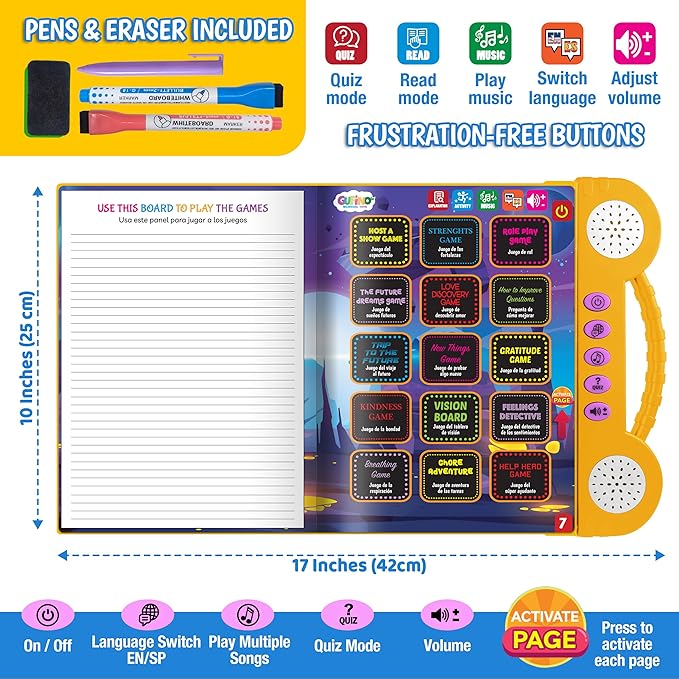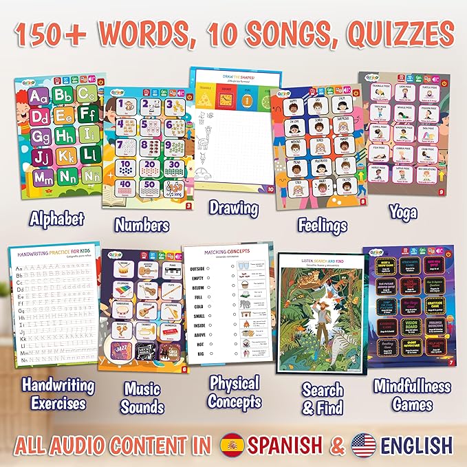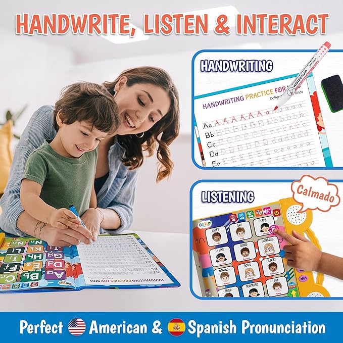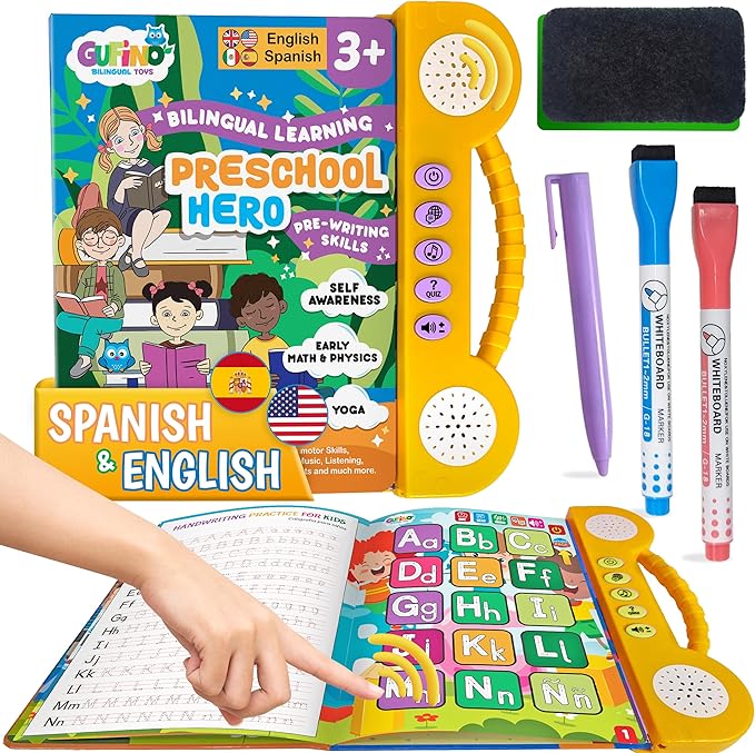 - Interactive Spanish-English Books for Kids β Designed to engage young learners, this bilingual learning toy combines play with education. An essential Spanish-English book for kids, it includes fun activities to enhance bilingual skills.