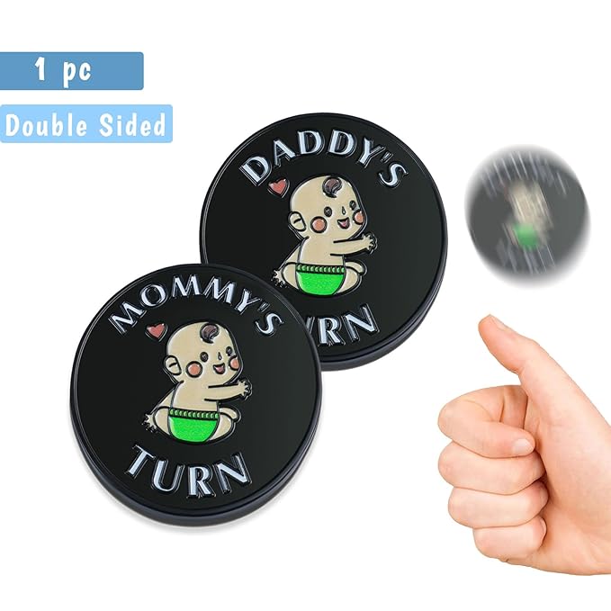 - FUNNY DECISION: To take care of a baby and bring some fun for a tired time, 2 sides of this pregnancy gifts coin stand by dad and mom. Turn the new parents gifts coin flips to decide whose turn to change a diaper or feed your baby at the midnight.