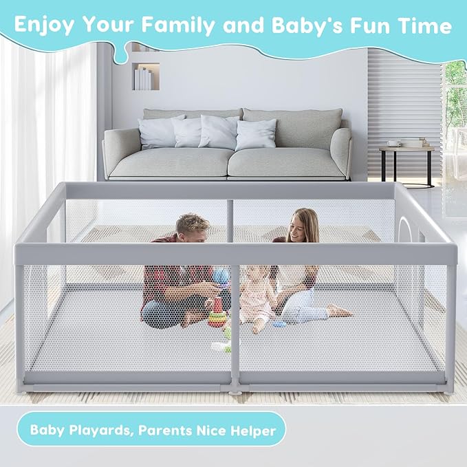 - [FREE YOUR HANDS AND ENJOY YOUR TIME]Our baby playpens can provide a great safe space to prevent them from getting lost or touching dangerous areas. Parents can free up their hands to do any things, such as cooking, cleaning, reading, no longer need to be worrying about their baby's safety, and you can check the status of your baby at any time, which is perfect for busy parents who want to provide their children with a safe and entertaining place to play while they are at work or leisure.