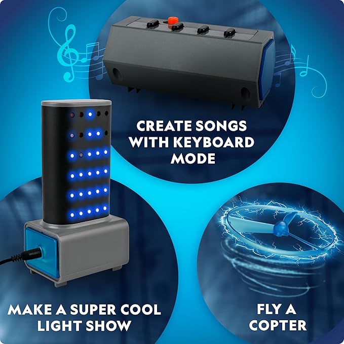- POWER UP THE FUN - The experiments & activities in this kit feature a wide range of electrical possibilities! Create songs with keyboard mode, make a super cool light show, fly a copter, build a sound system to amplify your voice, and much more!