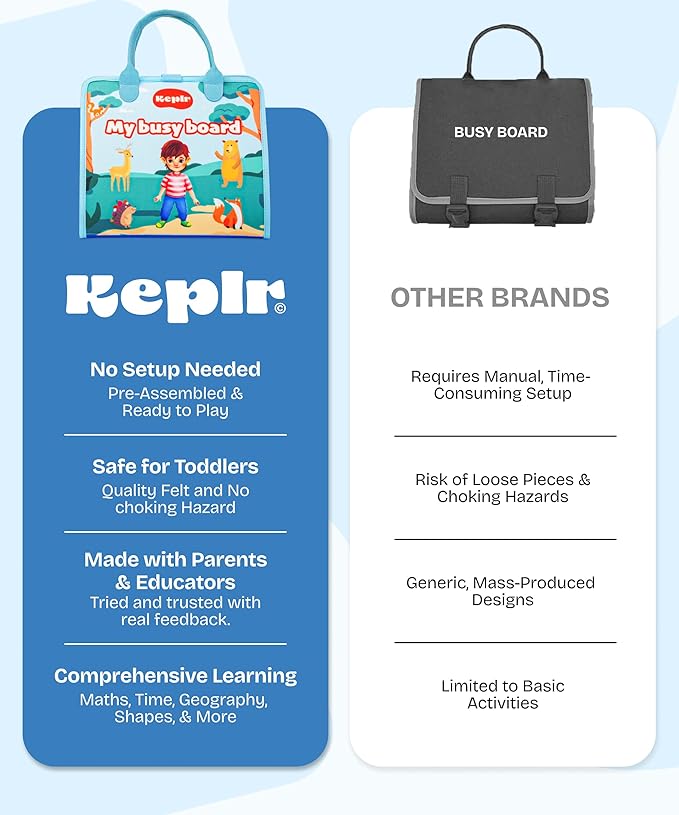 - Ideal for Travel & Quiet Play Whether in the car, on a plane, or at home, this toddler busy board is the perfect toy to keep children engaged. With its compact design, it can easily keep toddlers busy in quiet environments, offering a peaceful activity that enhances parent-child bonding. An essential item for any travel bag, keeping toddlers entertained and calm