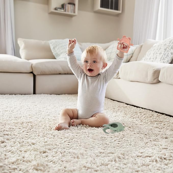 - Perfect Gift: Our baby teething toys comes in 3 different colors, without any tiny parts, provides a sturdy yet soft biting experience for your baby, helps soothe sore gums, 3 4 6 month old baby must haves. A thoughtful and perfect gift for new parents!