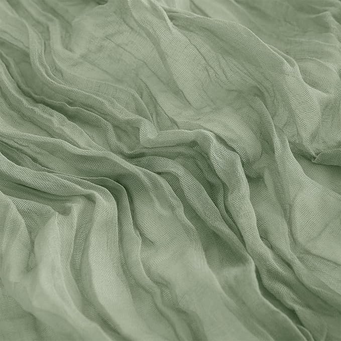 - Package Included:You will get 12 pack of sage green table runner, perfect for wedding banquets and various parties, enough to meet your daily use and replacement needs. Each sage green cheese cloth table runner measures approximately 35 x 120 inches/90 x 300 cm, long enough to be used individually on rectangular and round tables, or pieced together for long tables. No matter how it is used, this gauze table runner can be placed perfectly and elegantly on the table or hung on the floor, adding a romantic atmosphere to your occasion