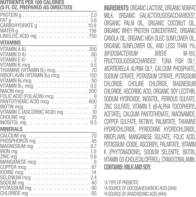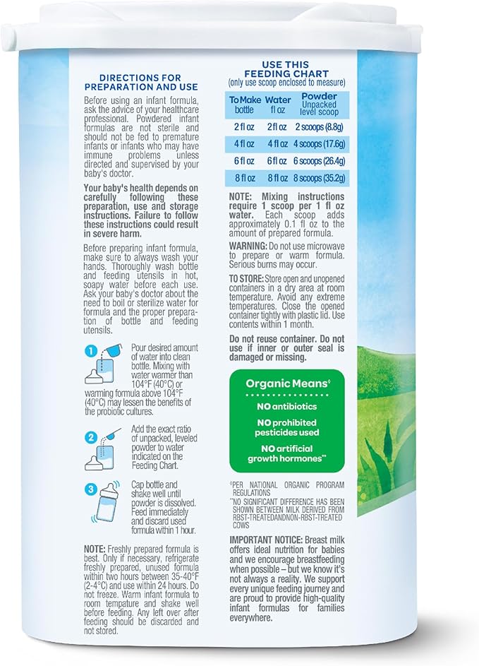 - Our best for bellies: we are the only USDA organic formula with probiotics & prebiotics to help support gut bacteria to be closer to breastfed infants, immune system development, and digestive health *compared to formulas without prebiotics & probiotics