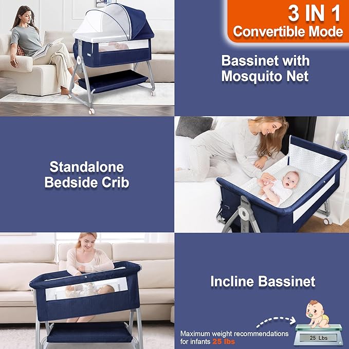 - 3 IN 1 CONVERTIBLE MODE - The bedside bassinet for baby is equipped with 3 modes, which can be used as a bedside sleeper, bassinet bedside sleeper and independent moises para bebe. This flexibility enables you to customize the sleeping environment according to your baby's needs, ensuring that your baby sleeps more comfortably and soundly