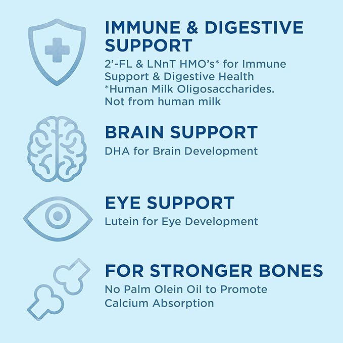 - IMMUNE AND DIGESTIVE SUPPORT: Enhanced with dual HMOs, 2'-FL and LNnT, immune supporting prebiotics commonly found in breast milk; HMOs aid the growth of beneficial bacteria in baby's digestive tract for immune support and digestive health