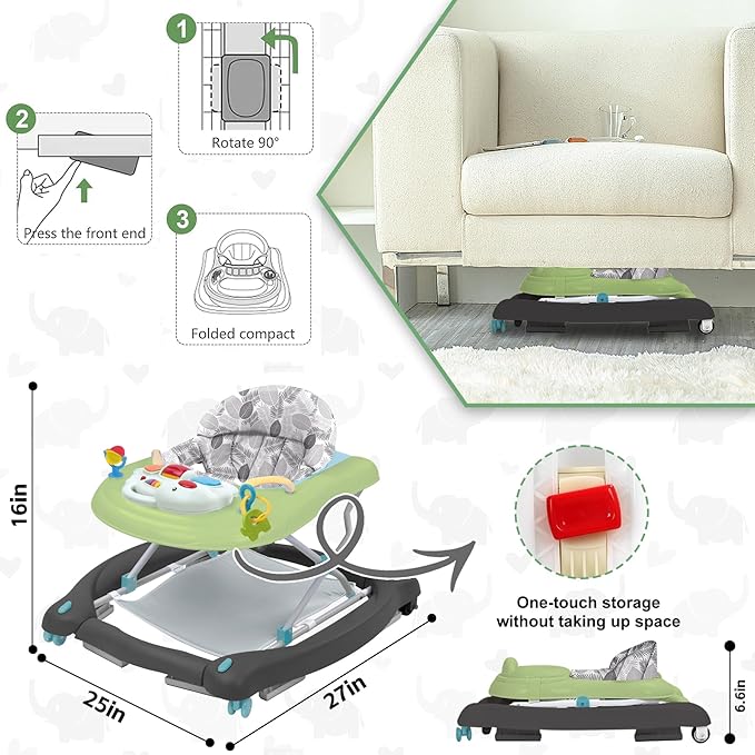 - Easy To Assemble And Fold: The baby boy and girl walker is easy to assemble and folds the walker with wheels in just a few steps, then unfolds and sits baby down; the baby girl walker can be stored under the bed or under the sofa without taking up too much space. The compact folding design makes this collapsible baby walker easy to carry around!