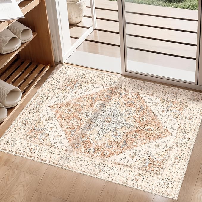 Ciicool Washable Vintage Area Rug, 2x4ft Boho Small Rug, Ultra Soft Rugs for Entryway, Non-Slip Entry Rugs Oriental Low-Pile Indoor Mat Floor Carpet for Entrance Bedroom Kitchen Bathroom Foyer Decor