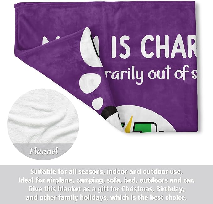 Craftique Gifts for Mom Birthday Christmas- Funny Soft Mom is Charging Blanket- New Moms Gifts for Women, Practical Blanket Throw for Napping Travel, 60”×50”