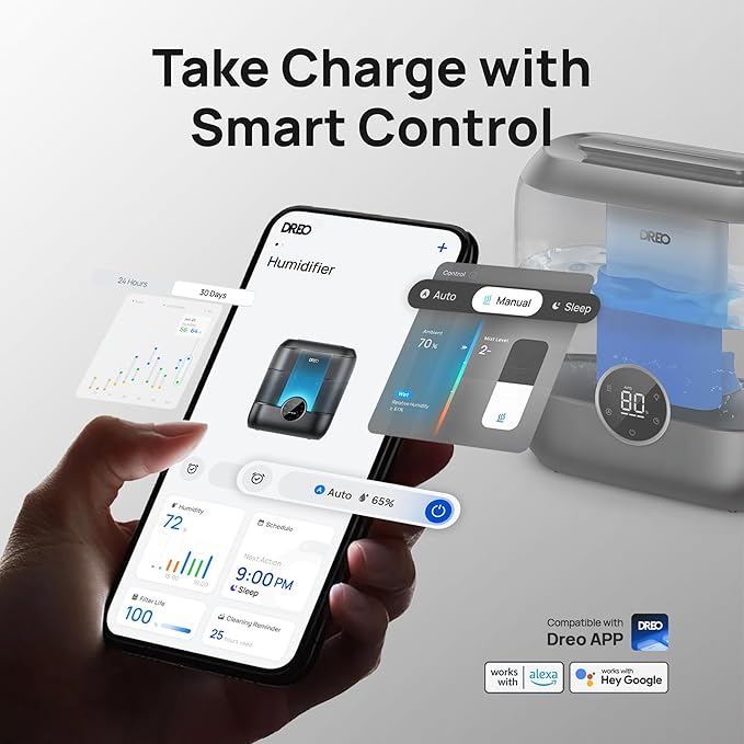 - ๐๐ช๐ข๐๐๐๐๐ฎ ๐พ๐ค๐ฃ๐ฉ๐ง๐ค๐ก, ๐๐๐๐ง๐๐ซ๐๐ง ๐๐ค๐ช ๐ผ๐ง๐: Use the DREO app, voice commands, or Alexa to remotely manage your cool mist humidifiers for bedroom, Easily monitor indoor humidity and adjust settings to ensure a healthy environment for your family, especially suited for babies, pets and plants indoor.