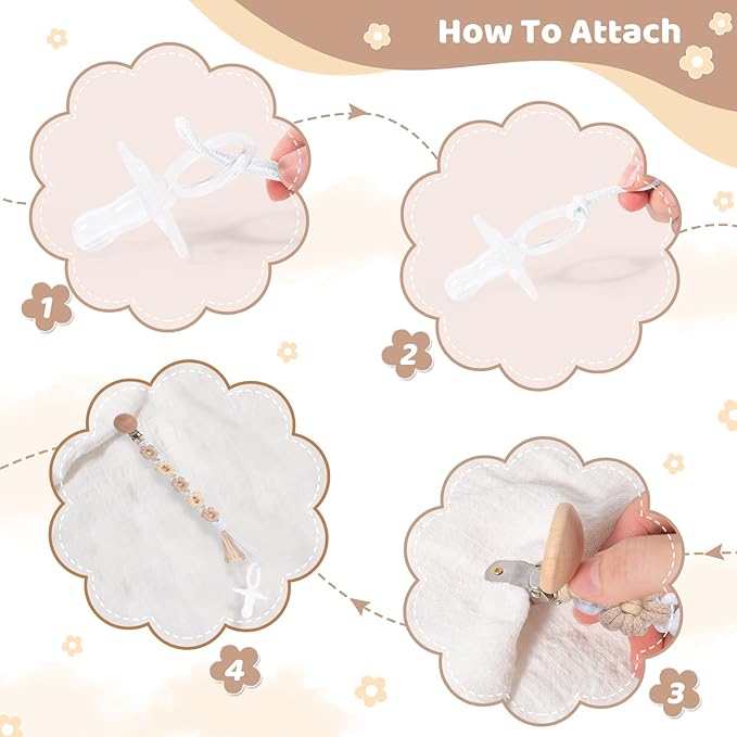 - ⏱️【Easy to Use & Clean】 Simply clip onto clothes, bibs, or strollers in seconds! The braided cotton cord is durable yet lightweight, and can be wiped clean for hassle-free hygiene.