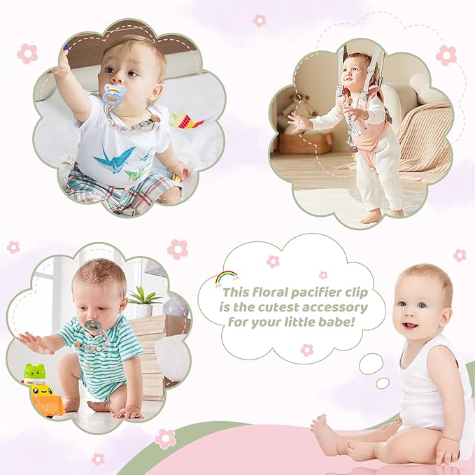 - 🌼【Handmade & Unique Daisy Design】 Each pacifier clip is hand-woven with soft cotton cord, featuring a chic daisy pattern and vibrant colors for a boho-chic style. Perfect for adding a fashionable touch to your baby’s outfits while keeping their pacifier secure. (No two clips are exactly alike!)