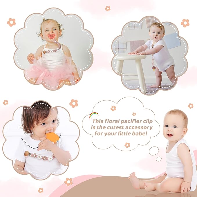 - 🌼【Handmade & Unique Daisy Design】 Each pacifier clip is hand-woven with soft cotton cord, featuring a chic daisy pattern and vibrant colors for a boho-chic style. Perfect for adding a fashionable touch to your baby’s outfits while keeping their pacifier secure. (No two clips are exactly alike!)