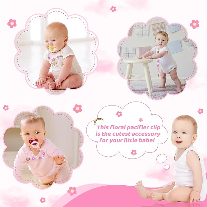 - 🌼【Handmade & Unique Daisy Design】 Each pacifier clip is hand-woven with soft cotton cord, featuring a chic daisy pattern and vibrant colors for a boho-chic style. Perfect for adding a fashionable touch to your baby’s outfits while keeping their pacifier secure. (No two clips are exactly alike!)