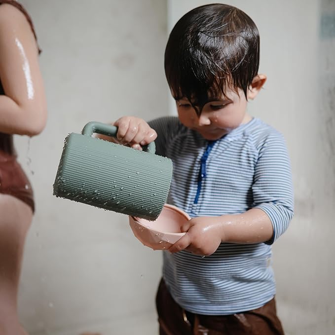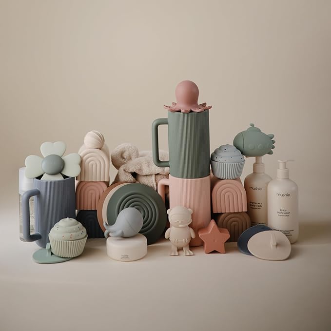 - Sofe & Soft Silicone: Made from food grade silicone and featuring calming colors, the Mushie bath rinse cup features a textured exterior and a convenient handle, so it's easy to keep a secure grip while pouring. All mushie Bath Rinse Cups are also Prop 65 and CPSIA Complaint.