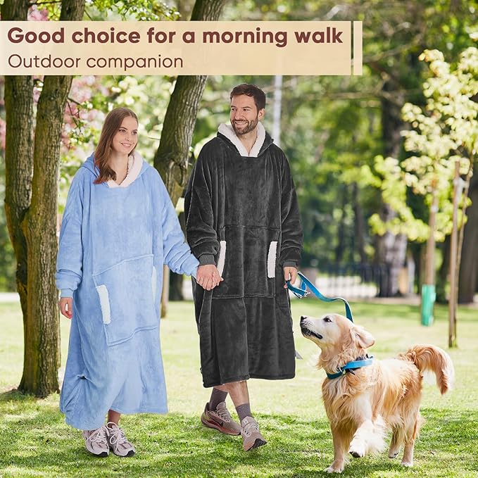 - 💖【EASILY DRESSED & WARM HOODIE】: Are you tired of wearing multiple layers of clothes on a winter morning? Do you complain to your friends that the cold prevents you from getting up early? Oversized blanket hoodie that allows you to dress quickly and warms your body in several seconds will give you the answer. Sweatshirt blanket hoodie with flannel brings you a soft touch, 200 GSM sherpa lined hoodie throw blanket is warm enough like a moving heated quilt to help you go through cold weather.