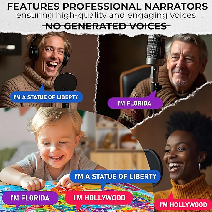 - HIGH-QUALITY EDUCATIONAL POSTERS FOR TODDLERS: Our learning toys for 3 year olds are made from totally safe first-rate materials; Our interactive talking map for kids saves your space; All you need is just easily hang this poster on a wall or doors
