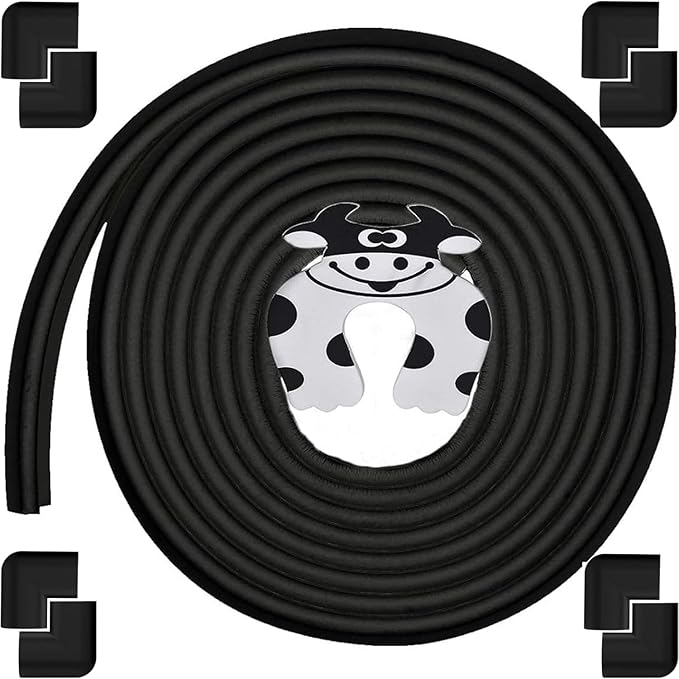 Edge Corner Protector Baby Proofing (Large 20ft Edge 8 Corners), Durable, High Density Rubber Foam, Fireplace Stair Furniture Safety Bumper Guard, 3M Double-Sided Tape, Black