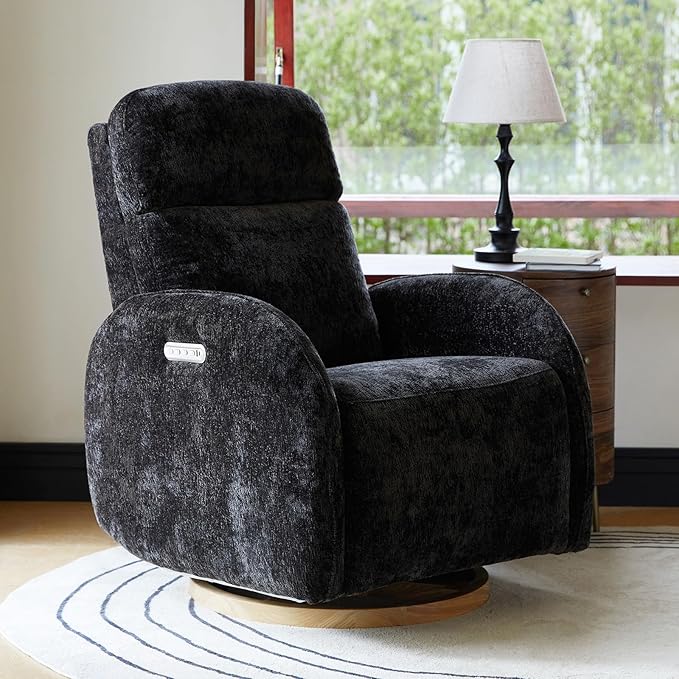 HULALA HOME Glider Recliner Nursery Chair with Adjustable Headrest and Lumbar Support, Modern Power Recliner with USB Port and Nightlight, Swivel Rocker Glider for Nursing Room Bedroom, Black