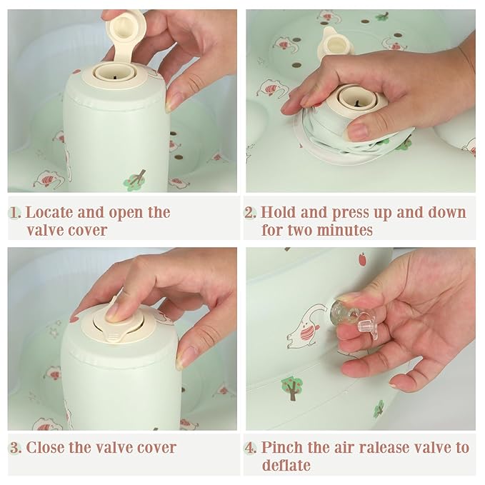 - Built In Air Pump: The sit me up floor seat for baby can be easily inflated by pressing up and down on the built-in inflatable pump, the sit up chair for babies is designed to be leak-proof, the valve needs to be squeezed when deflating, easy to fold and store