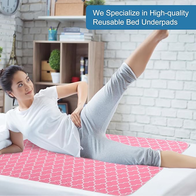 OUTCREATOR® Washable Bed Pads 34" x 56" (Pack of 2), Incontinence Mattress Protector, Anti-Slip Waterproof Underpads for Adults Kids Elderly Pets, Absorbency & Reusable Bedwetting Pads (Pink)