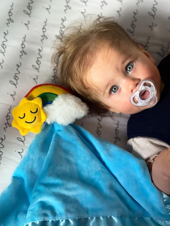 Yikestwins Rainbow Lovey Blanket for Baby | Large 20" x 20" Baby Lovey Unisex | CuteRainbow Security Blanket for Babies and Toddlers
