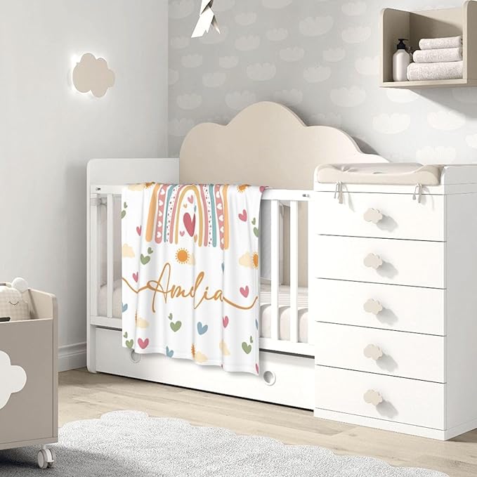 Personalized Baby Blankets for Girls Women Custom Boho Style Baby Blanket with Rainbow Personalized Baby Girl Blanket with Name Customized Gift for Adult Expecting Mom Baby Shower Birthday Gifts