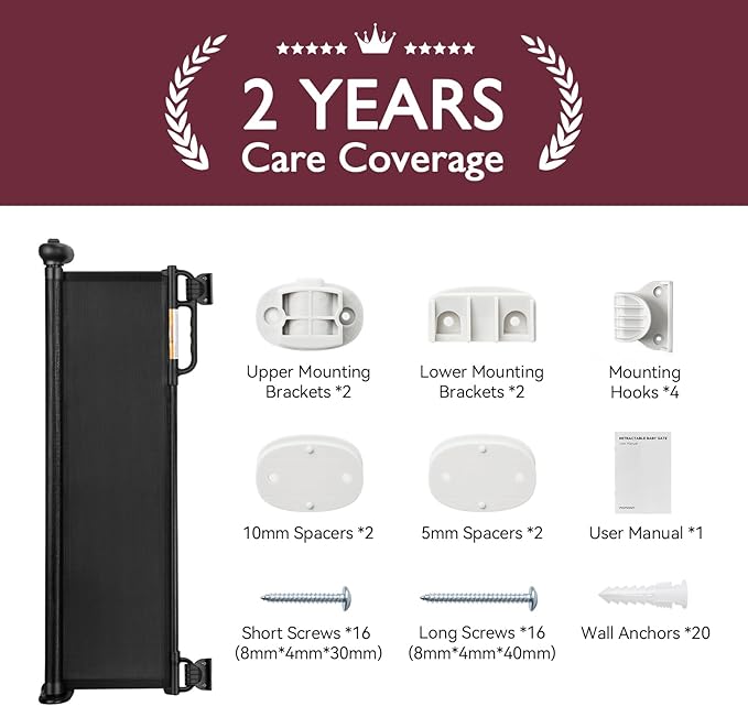 - Safety: Retractable gate featured with double locking mechanism creates a safety home for your curious crawlers and keep them away from danger, providing a safe, closed off environment to play.