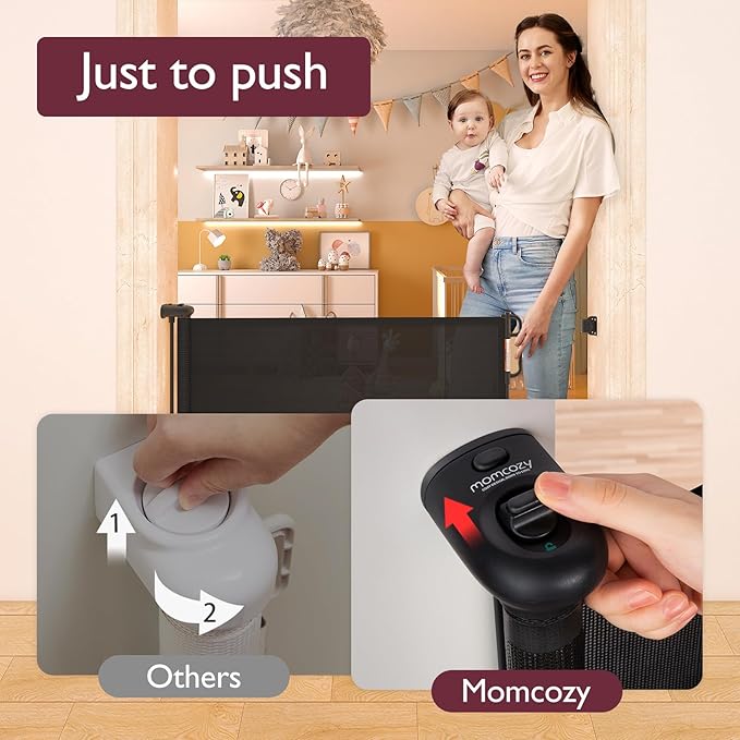 Retractable Baby Gate, Momcozy Extra Wide Mesh Baby Gates for Stairs, 41" Tall, Extends to 71" Wide, Black, Pet Dog Gate for Doorways, Stairs, Hallways, Indoor/Outdoor