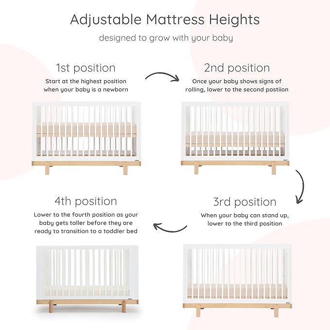 - CONVERTIBLE: Give your kid room to grow! Adjustable mattress height makes it flexible for newborns to toddlers. Converts to a Montessori-style floor bed and also a toddler bed and daybed with the toddler rail conversion kit (sold separately).