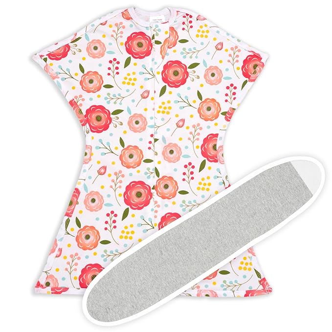 SleepingBaby Zipadee-Zip Transition Swaddle (Pretty Poppy, X-Small for 3-6 Months) and Snuggle Strap (Grey, One Size) - Wearable Baby Blanket and Accessory for Easy Diaper Changes - Polyester, Spandex