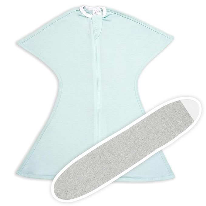 SleepingBaby Zipadee-Zip Transition Swaddle (Classic Mint, Medium for 6-12 Months) and Snuggle Strap (Grey, One Size) - Wearable Baby Blanket and Accessory for Easy Diaper Changes - Polyester, Spandex