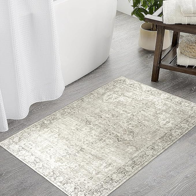ReaLife Rugs Machine Washable Area Rug - Living Room Bedroom Bathroom Kitchen Entryway Office - Padded Crease Free Stain Resistant Premium - Boho Farmhouse Vintage- Lyle- Beige Ivory- 2'x 3'