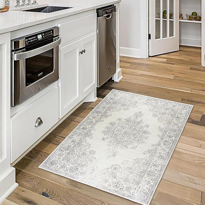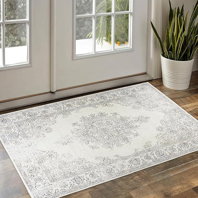 ReaLife Rugs Machine Washable Area Rug - Living Room Bedroom Bathroom Kitchen Entryway Office - Padded Crease Free Stain Resistant Premium - Boho Farmhouse Vintage- Paige- Ivory - 2'x 3'