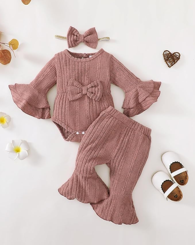 • Design: Pretty ruffle sleeve romper top and solid color pant sets make your baby girl more adorable in all day. Cute letter printed is full of love
