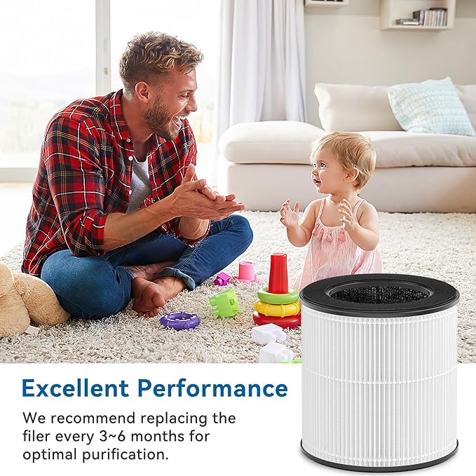 - [Better Air, Better Life] The replacement filter features 3 in 1 filtration System: Pre-filter, H13 true filter, and Charcoal filtration system work together to purify 99.99% of 0.3-micron particles from dust, pollen, PM 2.5, pet dander, smoke, cooking smell, hair and odor. Effectively improve indoor air quality and create a healthy environment.