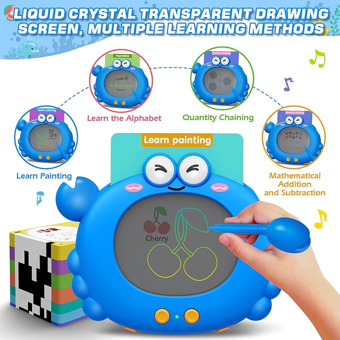 - Adorable Crab Design: Shaped like a cute crab, this toy makes learning extra fun! The right pincer detaches and becomes a pen for writing, adding a playful interactive element.