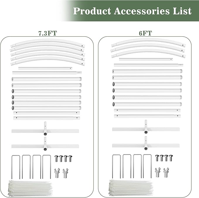 - Easy Installation and Excellent Service:Each arch adopts short section design, which greatly reduces storage space and facilitates transportation and storage. Therefore, each arch is made up of multiple parts that you need to assemble yourself. If you encounter any problems installing the metal arch frame set, please feel free to contact us and we will serve you wholeheartedly