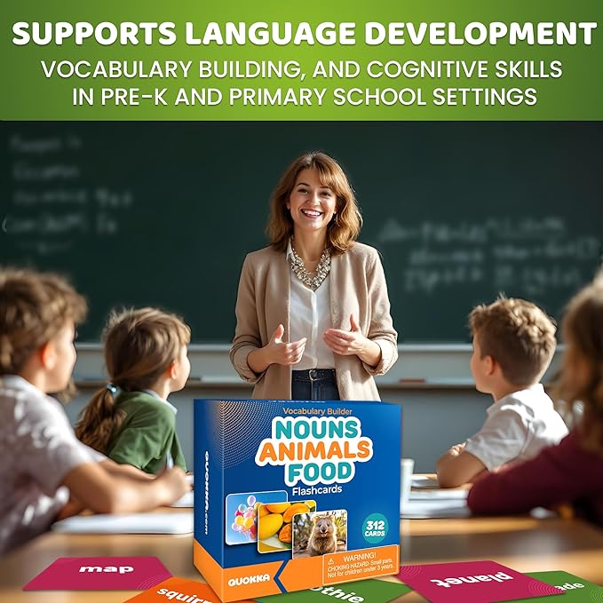 - DIVERSE VOCABULARY FLASH CARDS: 312 real-life images cover nouns of daily objects, animals, foods, and more; promote cognitive growth through visual learning; ideal kids flash cards in kindergarten, schools and adults in language development settings