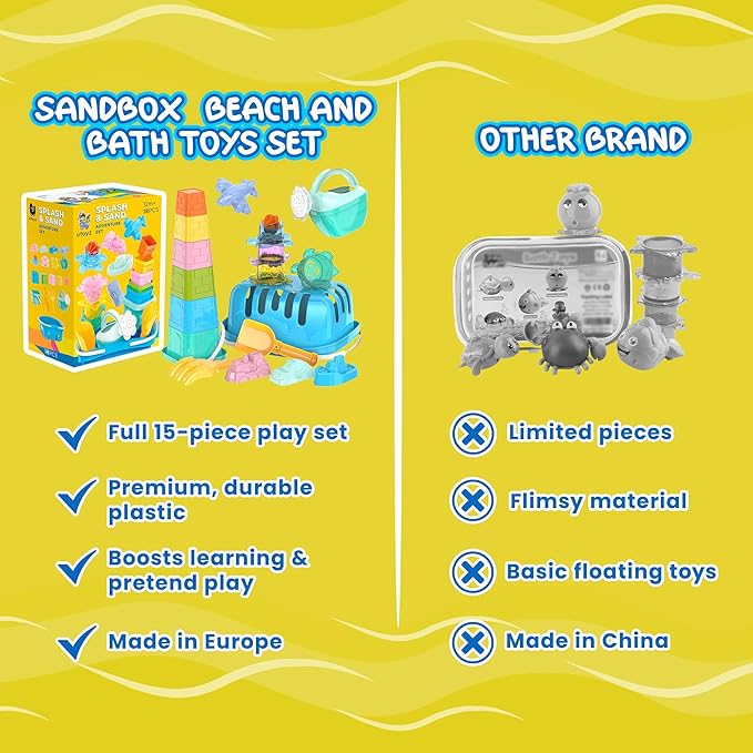 - Supports Developmental Milestones Through Play: This beach toy set promotes sensory play, fine motor skills, hand-eye coordination, and early problem-solving through hands-on activities. Great for independent or group play, it’s perfect for beach games for kids, beach activities, and beach sand toys. Whether you're packing girl beach toys, boys beach toys, or beach baby essentials in beach bags for kids, this set supports learning through fun.