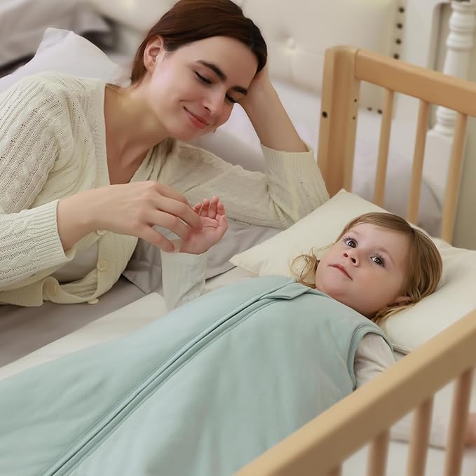 - 【Sleeveless】Baby sleep sack should be sleeveless to aid the heat loss and air circulation. Babies sleeping under traditional blankets rarely sleep with their arms inside. Sleeveless design reduces the risk of overheating. Your baby is covered and warm all night. No more kicked off covers means your baby sleeps more comfortably.