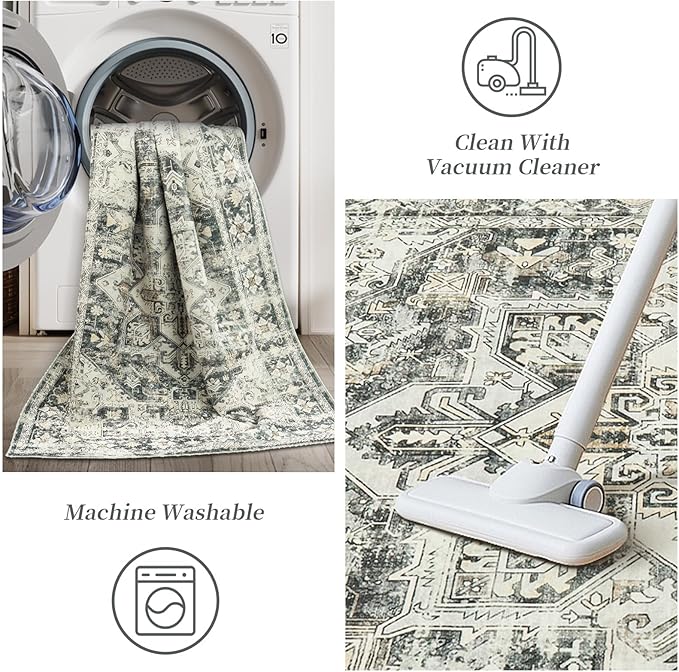 - EASY CARE & WASHABLE RUG: Stain-resistant 5x7 rug, it won't trap dirt. Surface dust can be wiped with a towel or cleaned with a robot vacuum or vacuum cleaner. Of course, it can also be machine washed regularly.