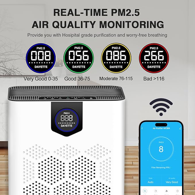 H14 Air Purifiers for Home Large Room Up to 3000 Ftยฒ, Smart Wifi with Washable Filters, Air Quality Monitor, 4 Fan & 22 dB Sleep Mode for Bedroom Living Room