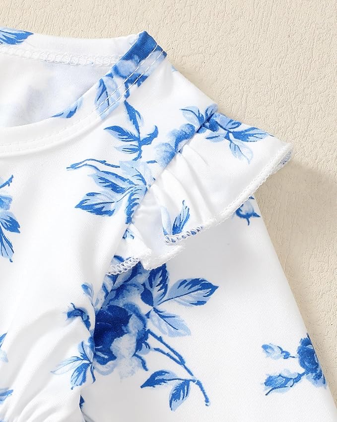 - Design: Flower/Leopard/stripe/Solid long sleeve shirt, ruffle hem styles, match with ruffle pant, simple yet cute.