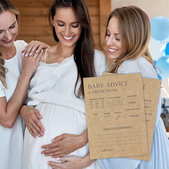Prediction & Advice Game Card For Baby Shower - Set Of 30 Minimalism Brown Game Cards For Boy Girl - Wishes For Baby Advice For New Parents-Baby Shower Party Favors And Decorations - B02