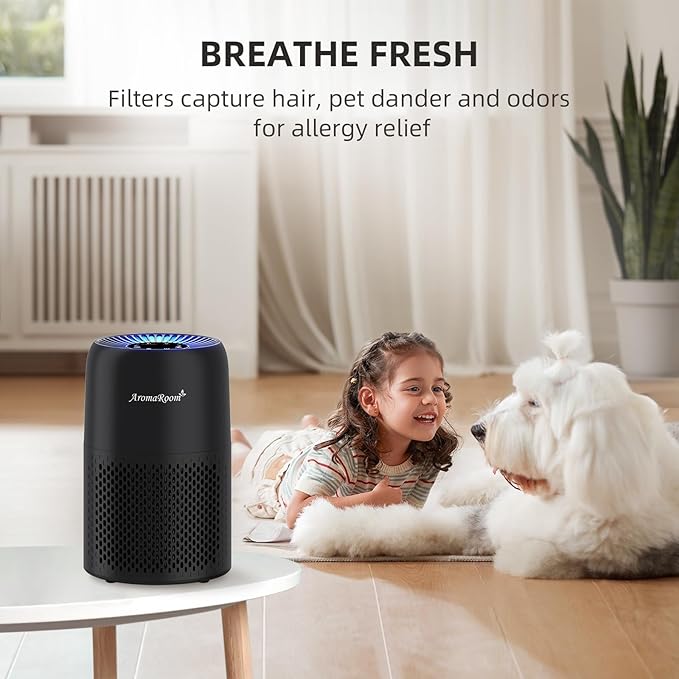 Air Purifiers for Home Bedroom, AromaRoom H13 HEPA Air Purifier Filter for Allergies, Pollen, Smoke, Dusts, Pets Dander, Odor, Hair, 22dB Quiet Air Cleaner for Room, Office, Dorm, AP100-B (Black)
