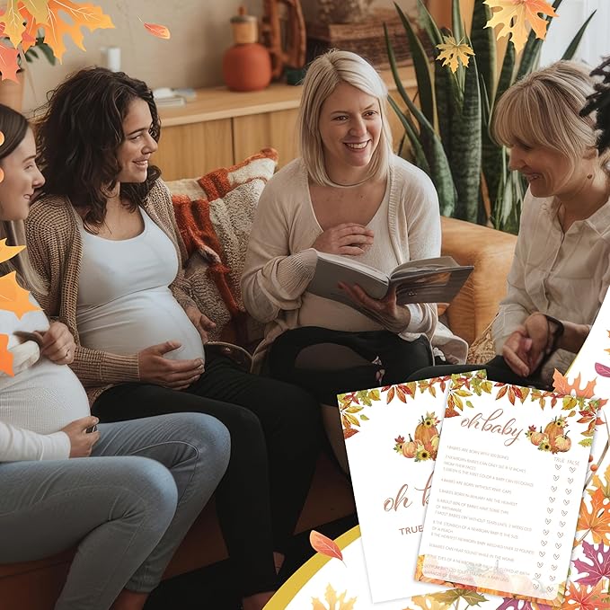 Fall Baby Shower Games, Oh Baby True or False Game Cards, 5x7 in, Thanksgiving Baby Shower Party Favor Decorations Supplies - A04