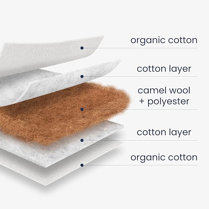 • The baby infant sleeping bag is made of organic cotton, wool, and polyester. This product composition ensures the sleeping bag is durable, soft, wash-resistant, and maintains its loftiness over time. It can be cold machine washed (<40 centigrade) in a gentle cycle. Low tumble dry. Iron at low temperature if necessary.