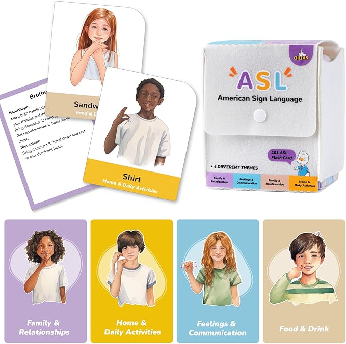 CHEFAN ASL Flash Cards, 101 American Sign Language Flash Cards for Beginners, Kids, Teens and Adults