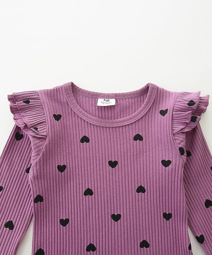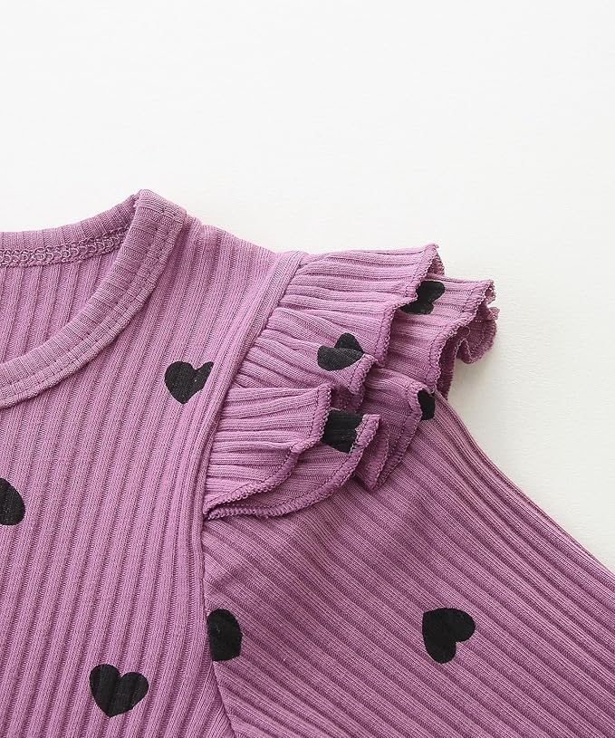 • Baby girl outfits with adorable heart prints express great love from family.The ruffled layered shoulder,frill pant and headband will highlight your beloved Baby beauty.